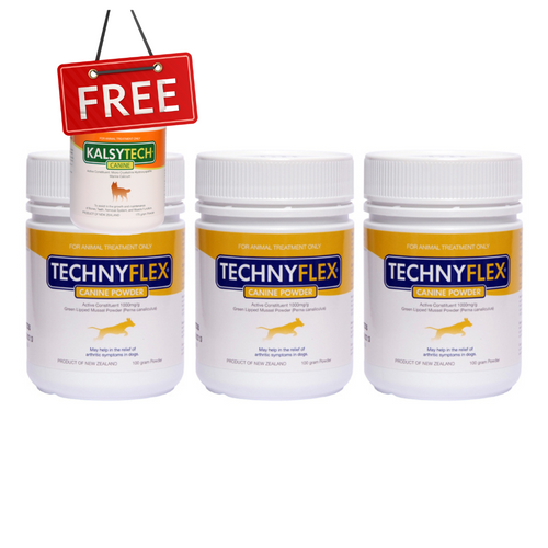 ☆SPECIAL☆ TRIPLE PACK Technyflex® Canine 100g Powder tub + 1 FREE Kalsytech® Canine Calcium supplement 175g Powder Tub
