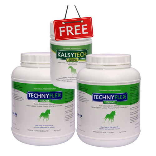 ☆SPECIAL☆ TWIN Technyflex® Equine 1kg Powder + 1 FREE Kalsytech® Equine Calcium Supplement 175g powder tub